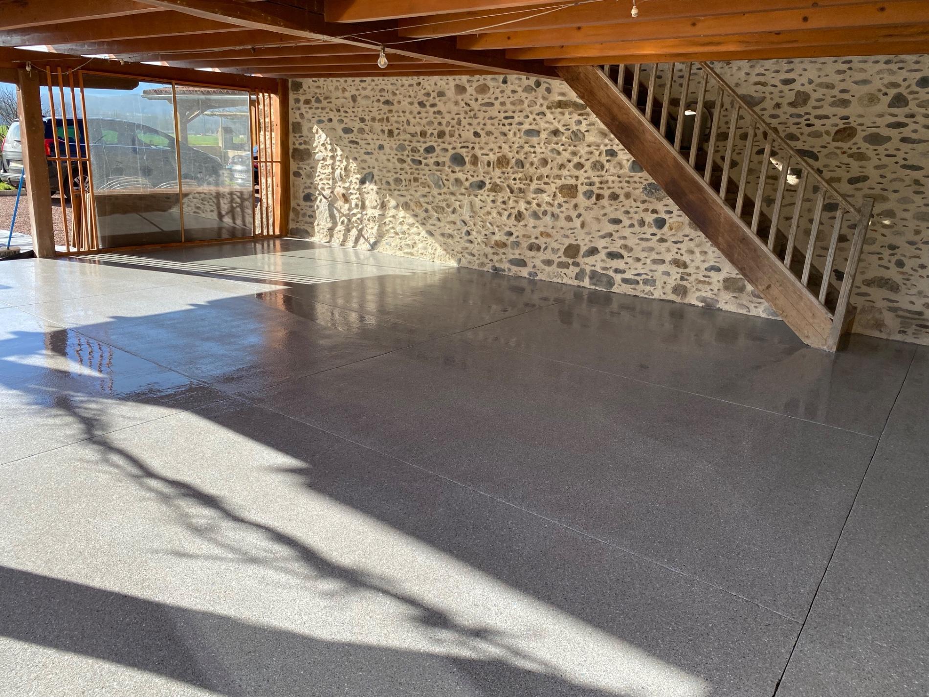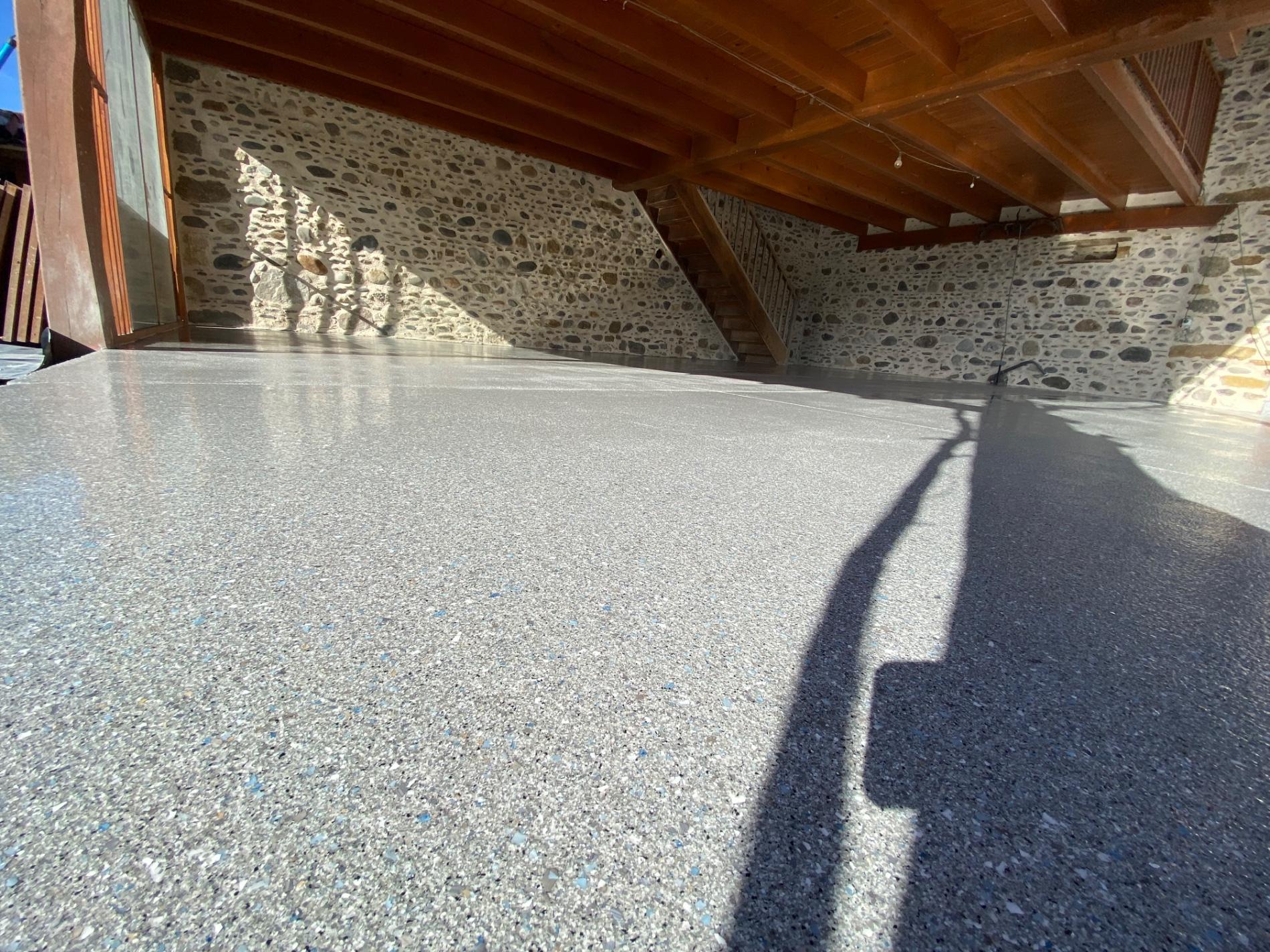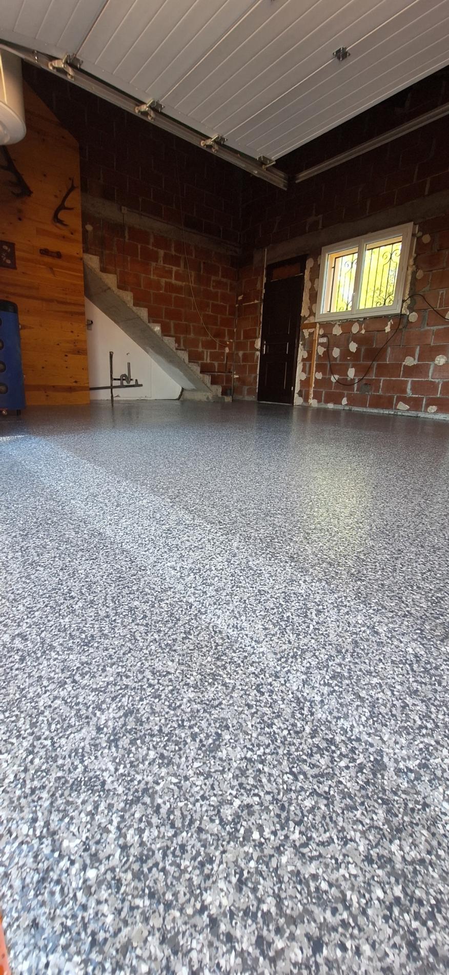 Rénovation de vos sols en résine pailletée / flake carrossable intérieurs ou extérieurs