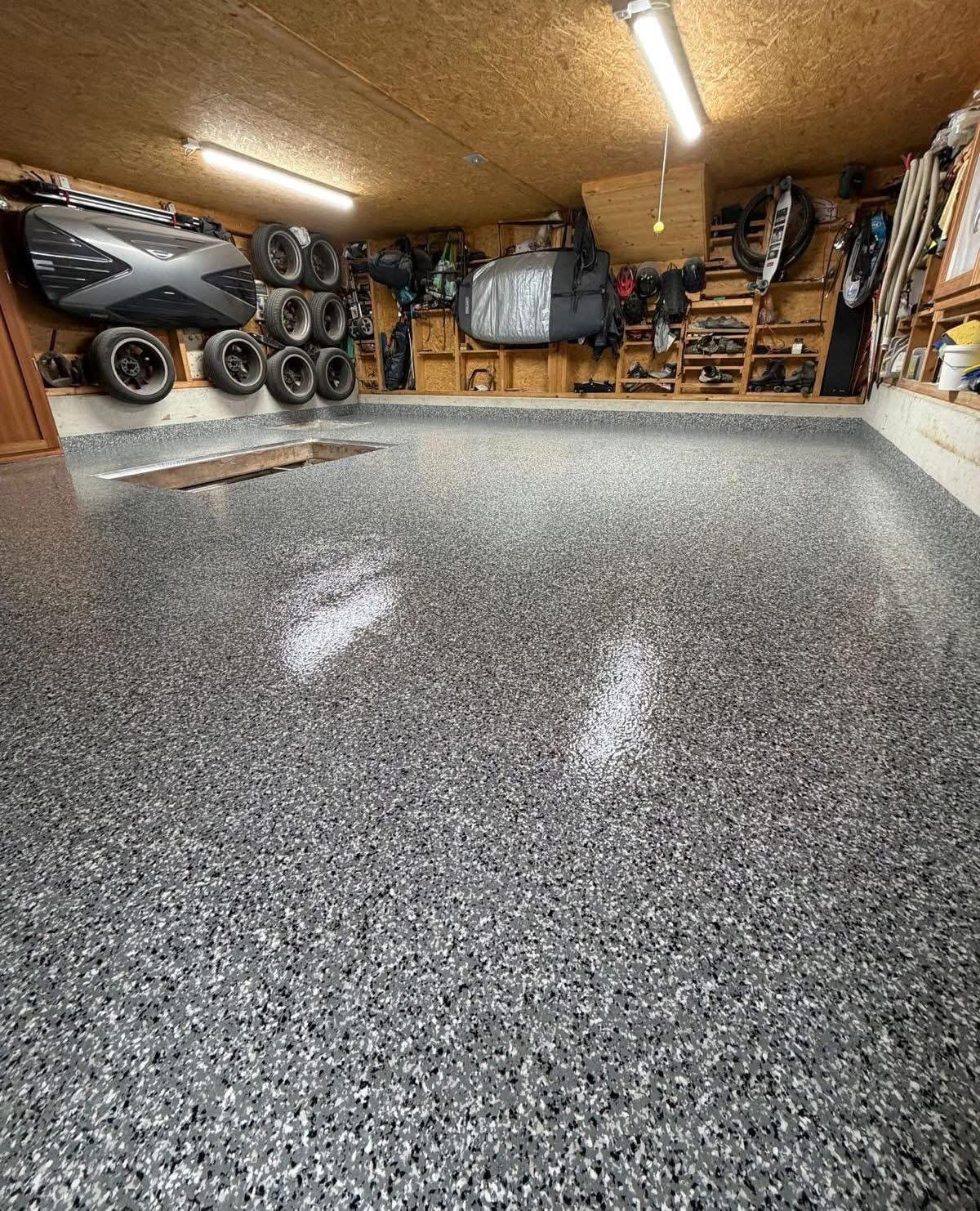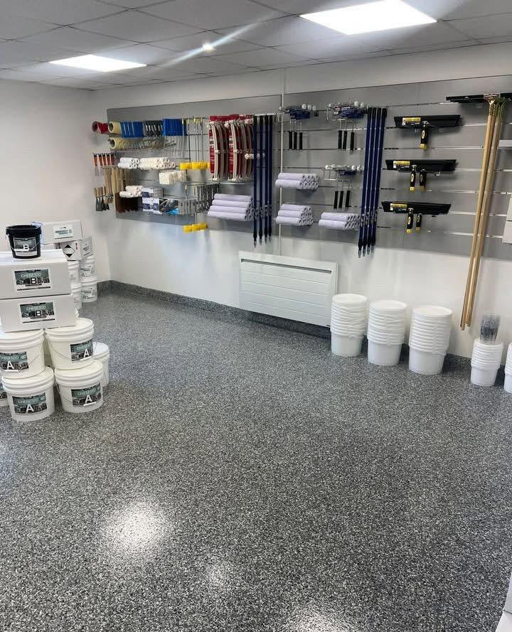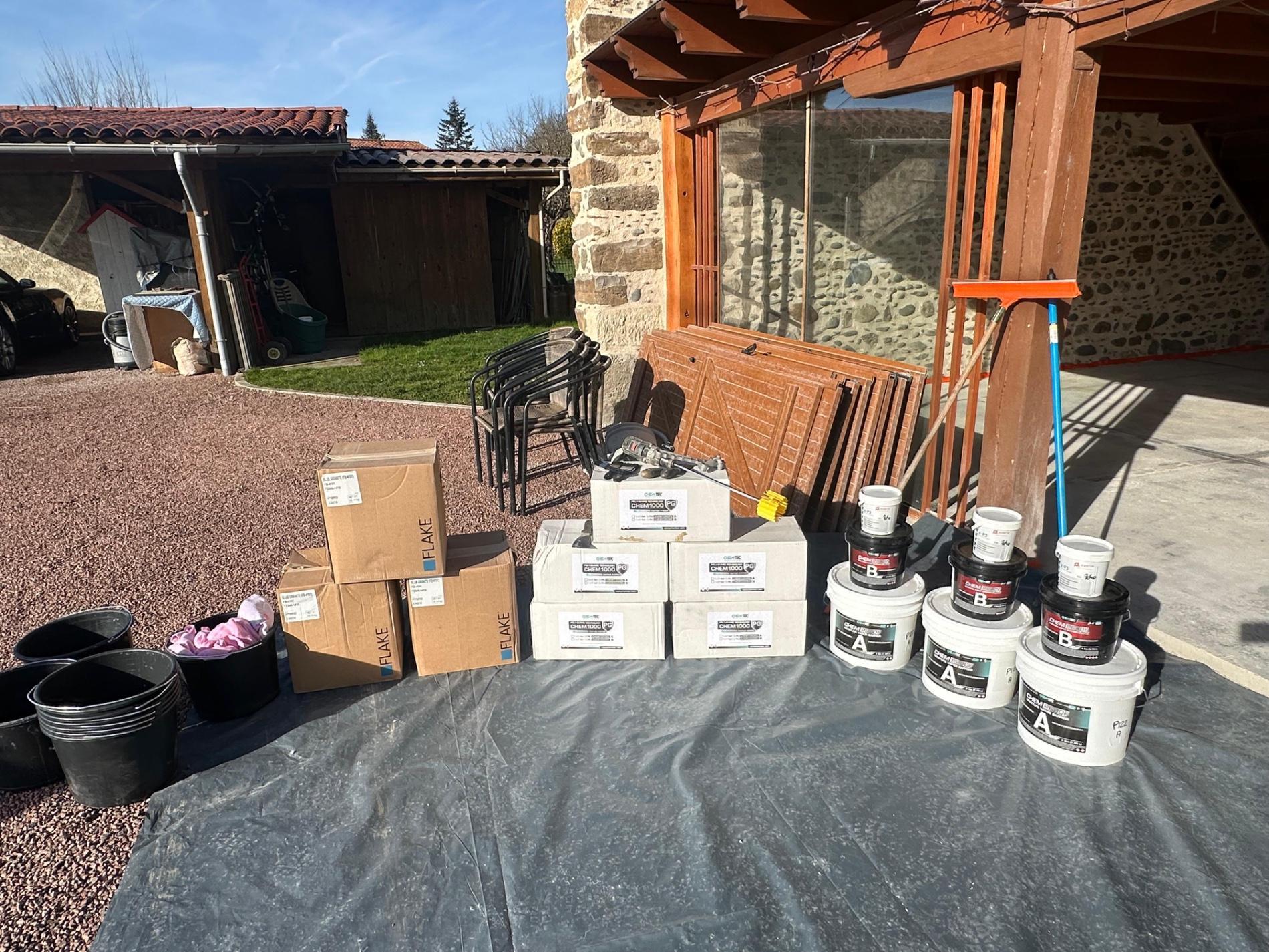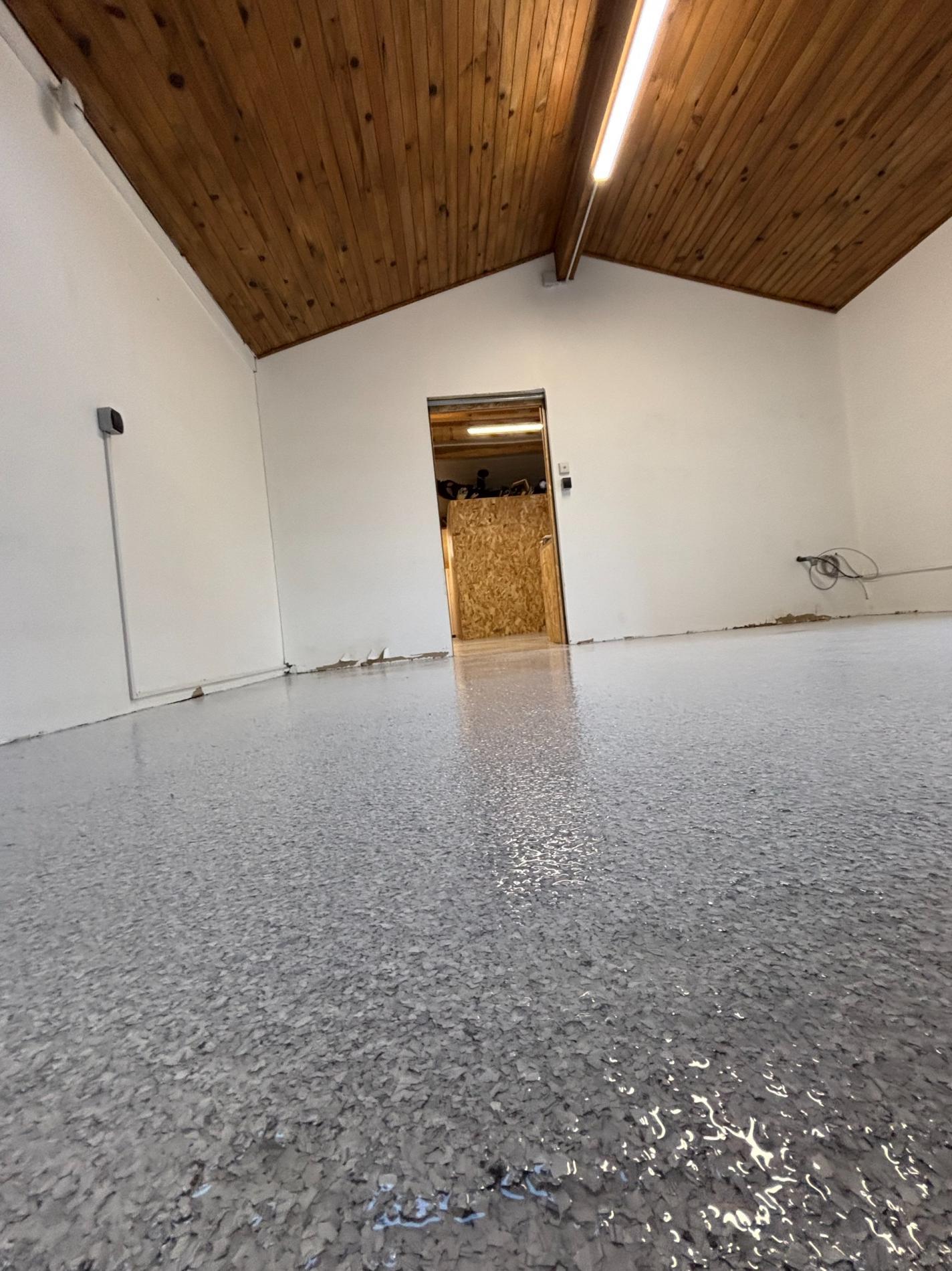 Rénovation de vos sols en résine pailletée / flake carrossable intérieurs ou extérieurs